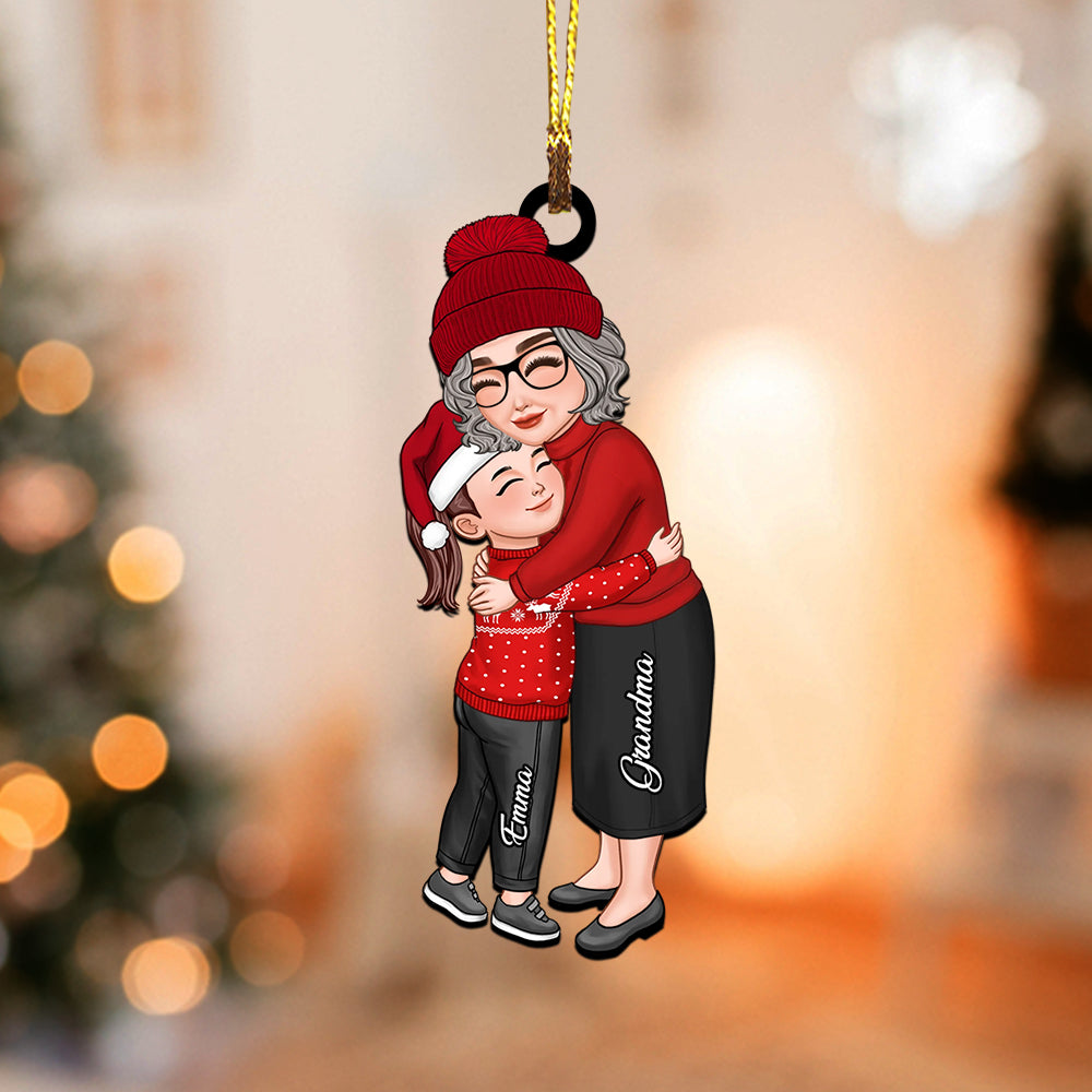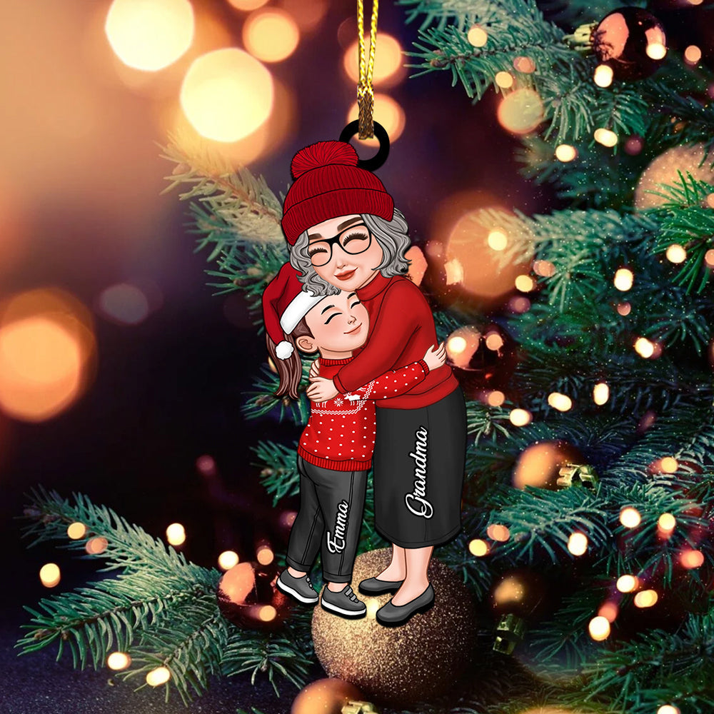Mom, Grandma Hugging Kid, Grandkid - Christmas Gift For Family, Custom Appearances And Names - Personalized Acrylic Ornament