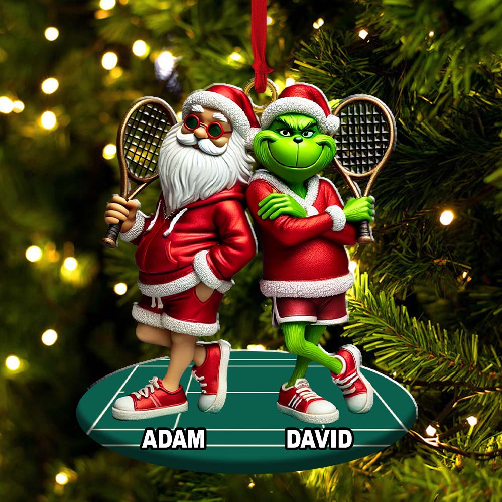Santa And ELF Christmas Ornament, Personalized Ornament, Tennis Christmas Gift