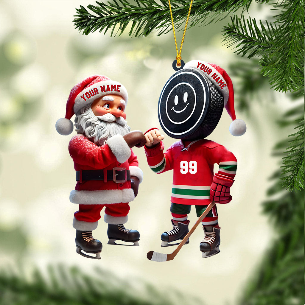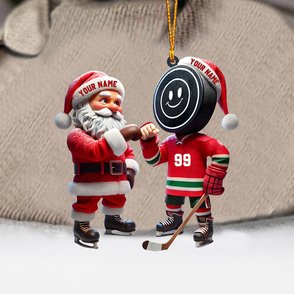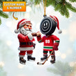 Santa And The Hockey Player Christmas Ornament, Personalized Ornament