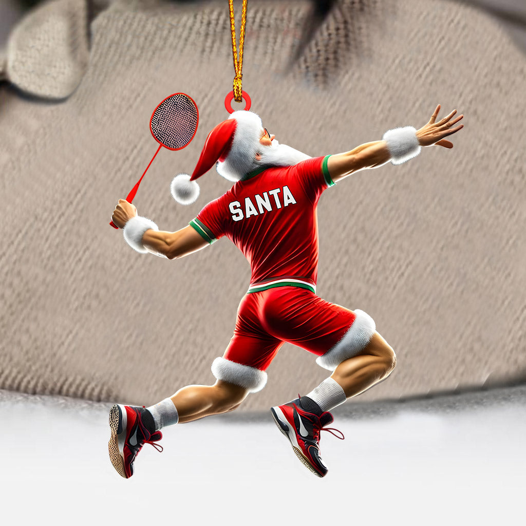 Santa Badminton Christmas Ornament, Personalized Ornament