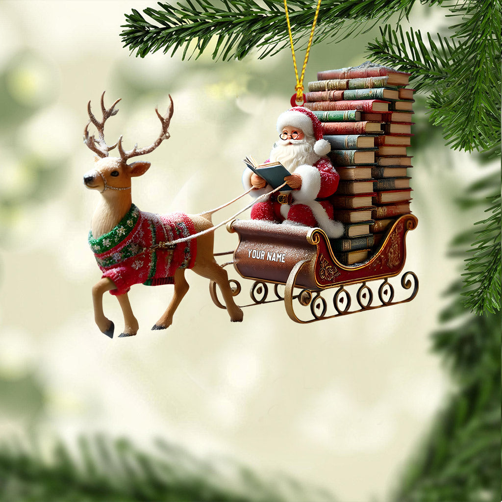 Santa Book Lover Home Decor Christmas Ornament, Personalized Ornament