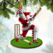 Santa Playing Cricket Ball Christmas Ornament, Personalized Ornament