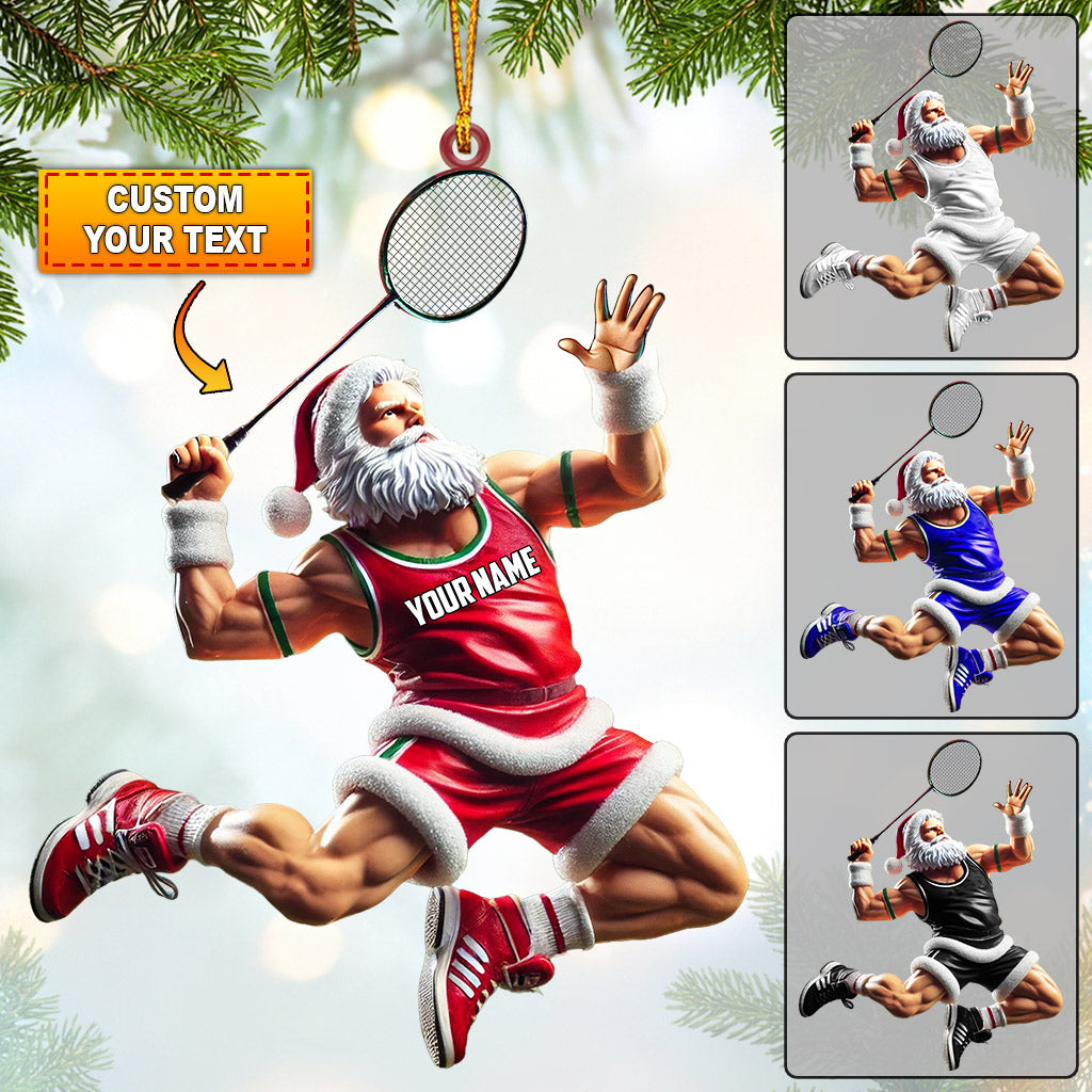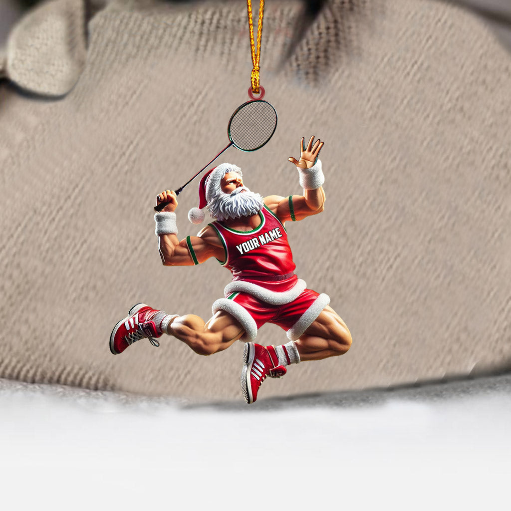Santa Plays Badminton Christmas Ornament, Personalized Ornament