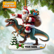 Santa Riding A Dinosaur Christmas Ornament, Personalized Ornament