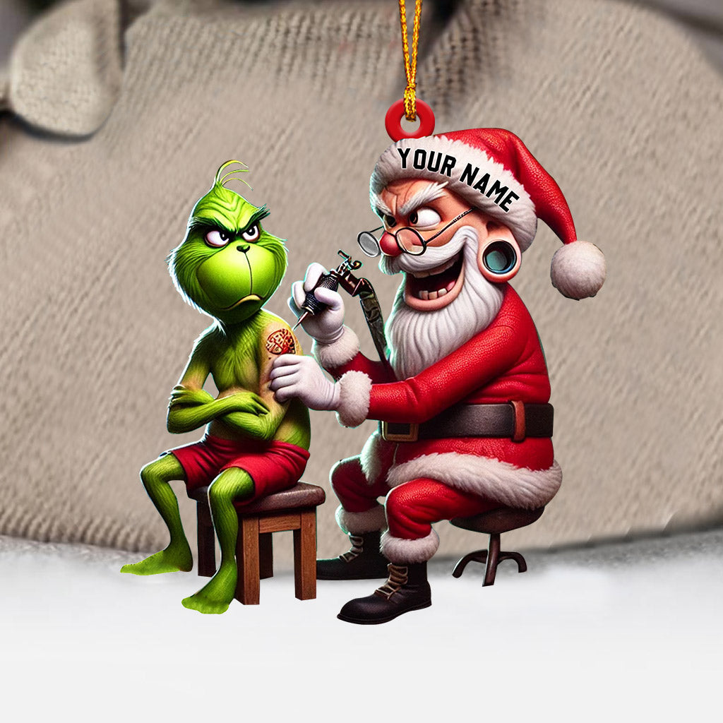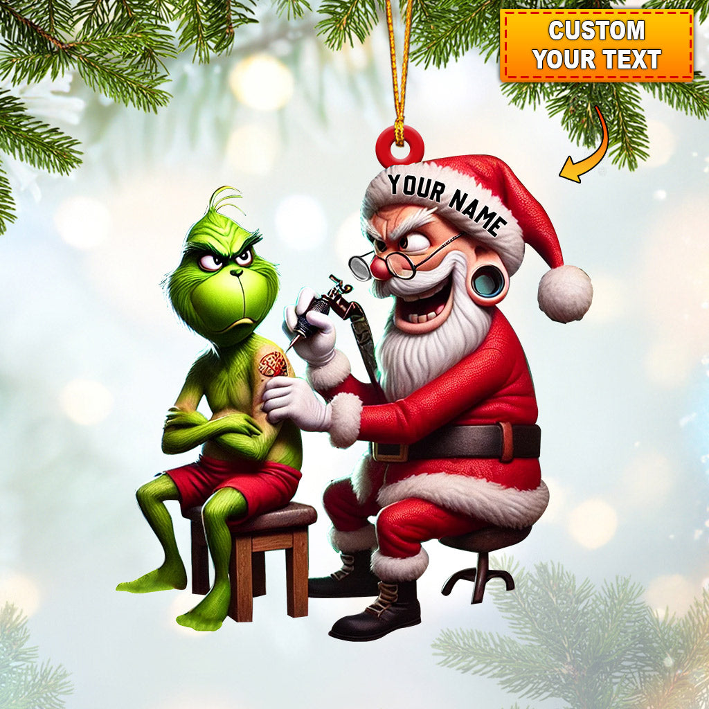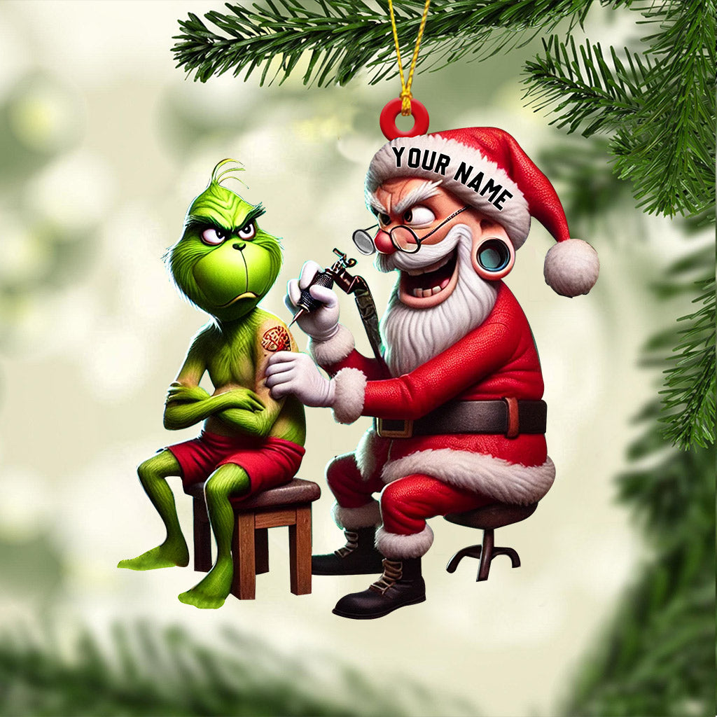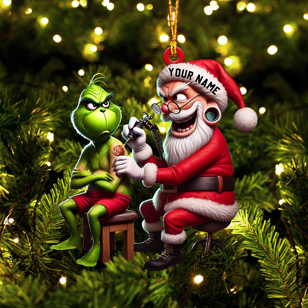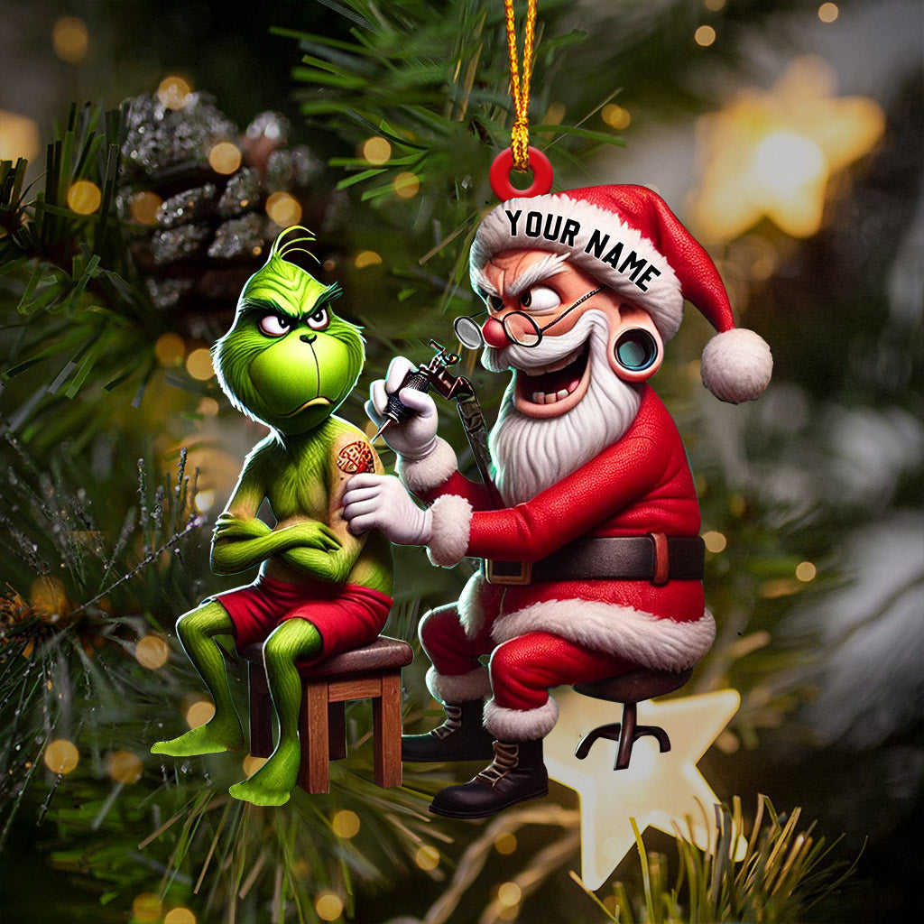 Santa Tattoo Artist Christmas Ornament, Personalized Ornament