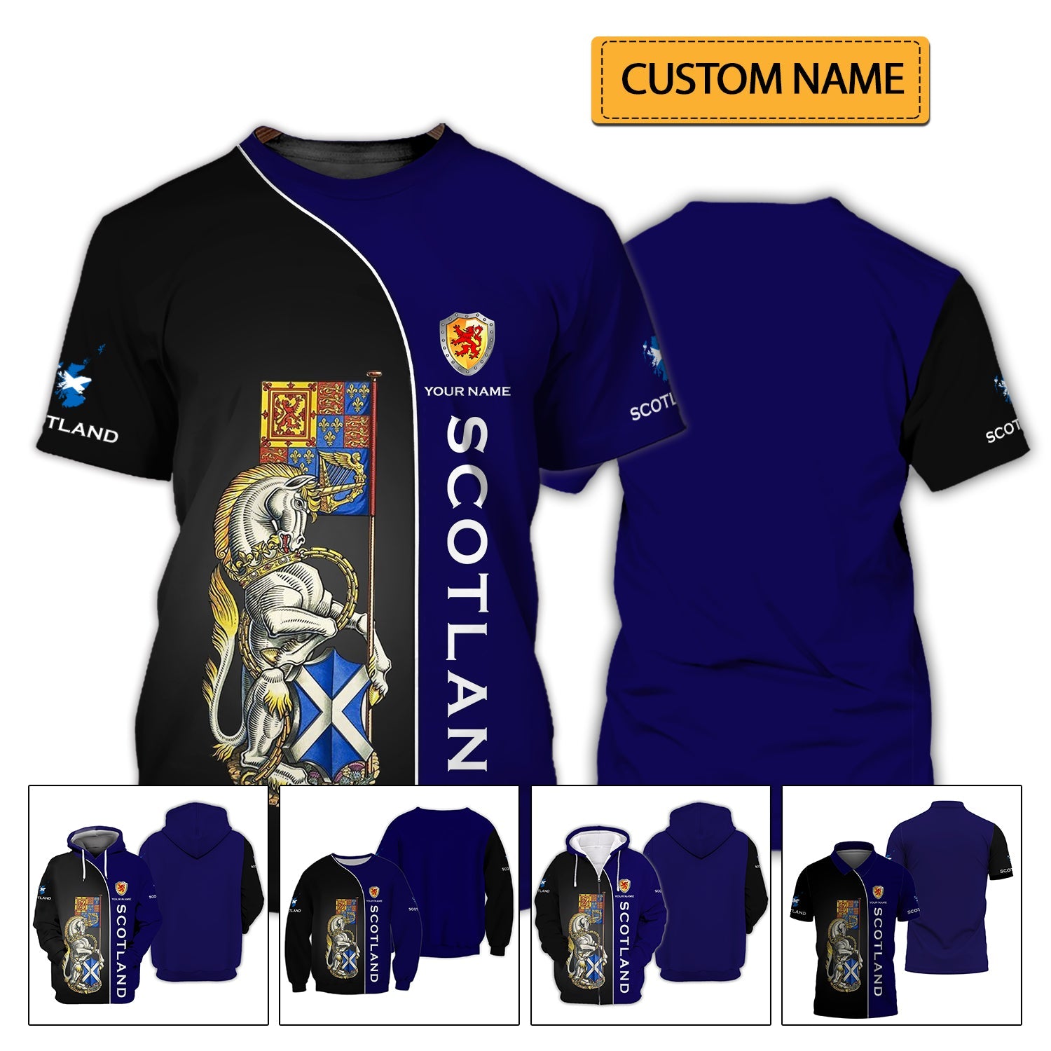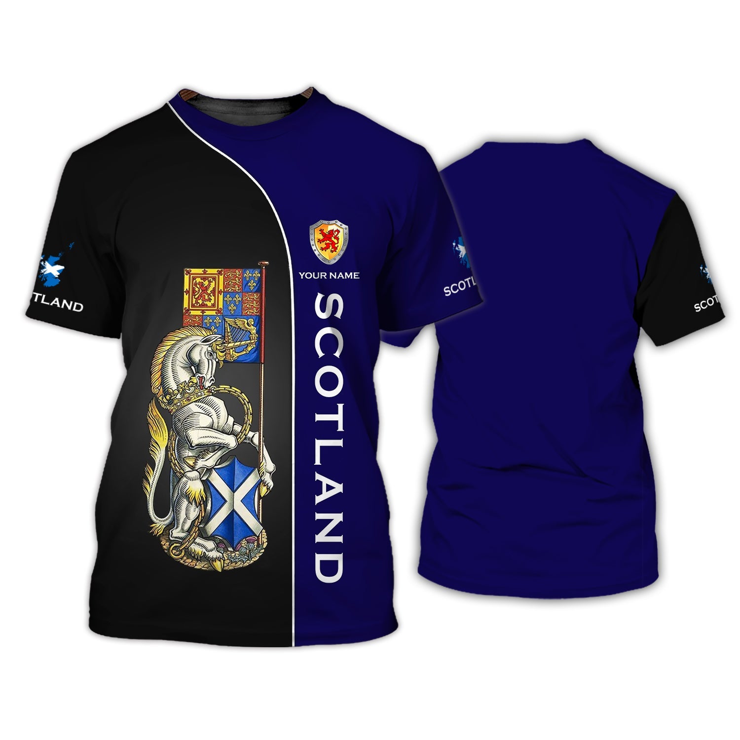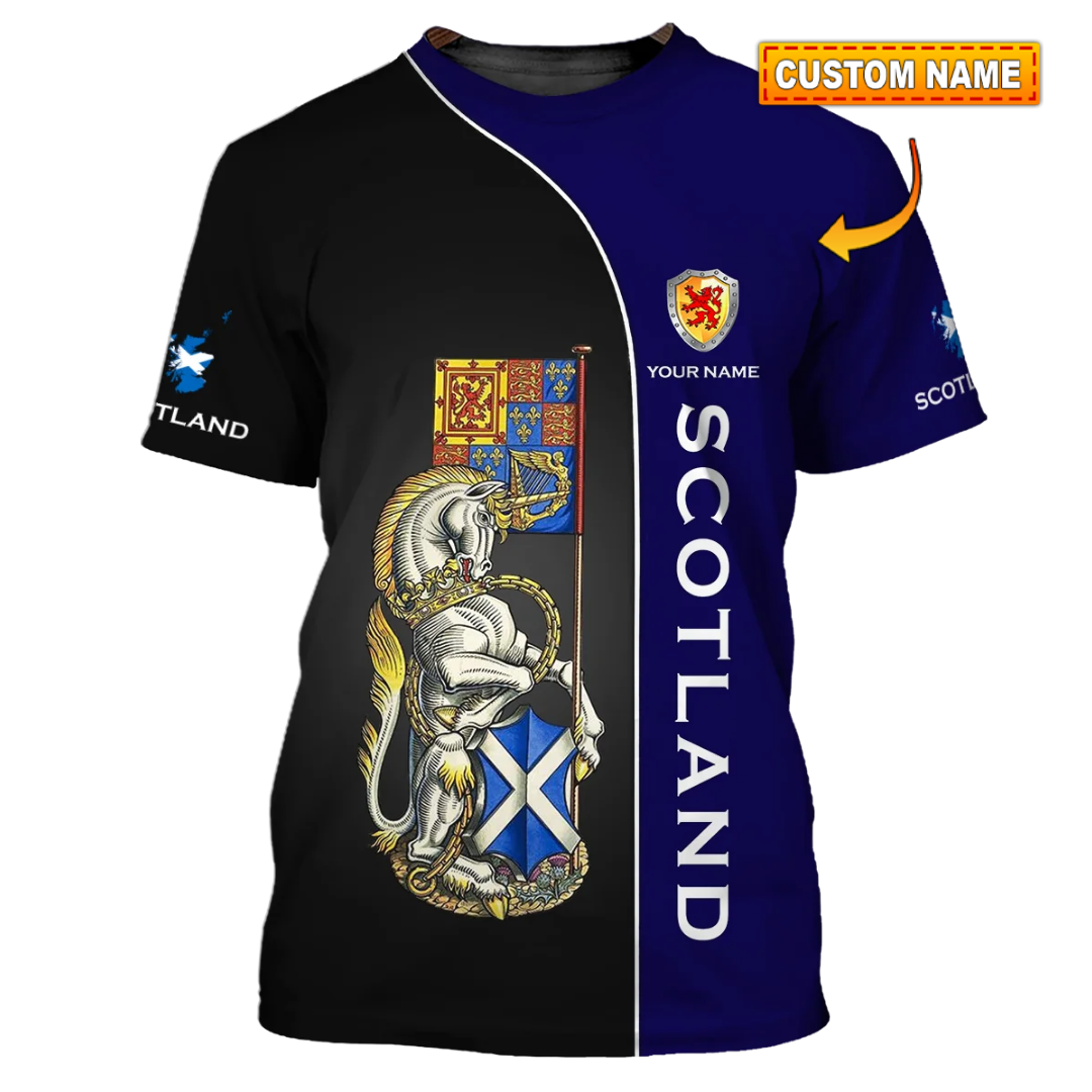 Unisex Shirt - Custom Name 3D Shirt - Scotland Lover, Blue And Black Design