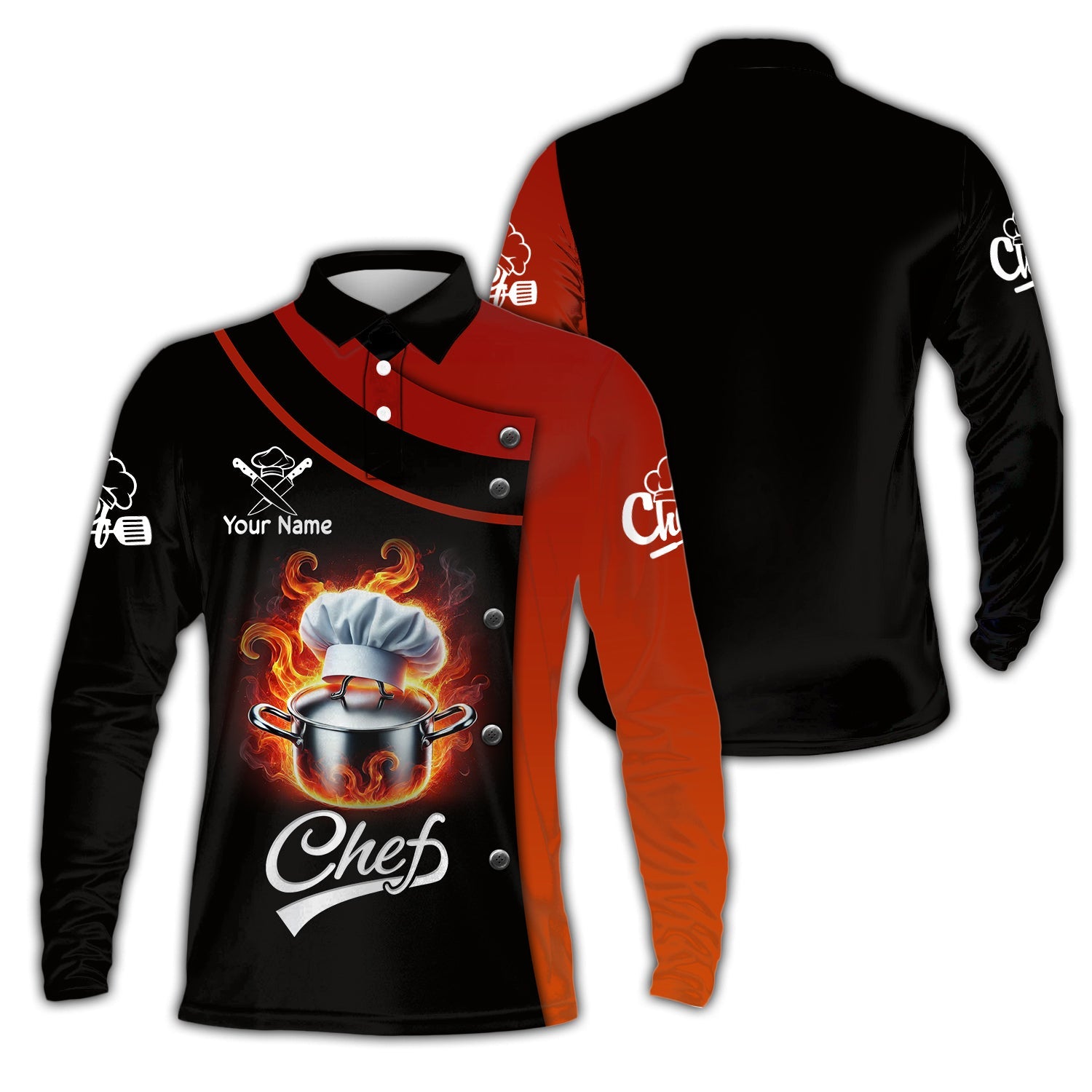 Unisex Shirt, Custom Name Chef Shirt, Chef Apparel, Chef Polo Long Sleeve, Cooking Love T-Shirt