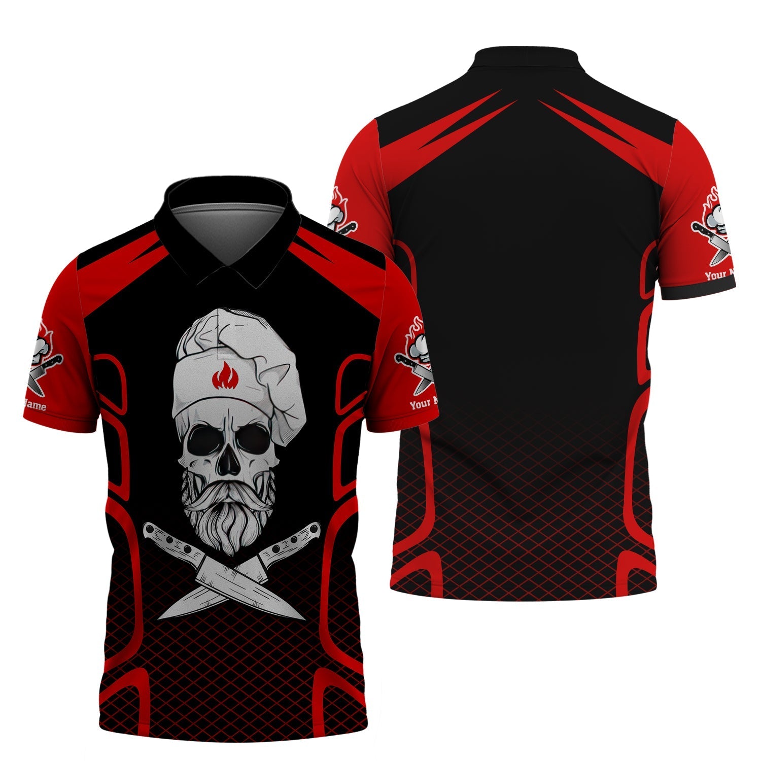 Unisex Shirt, Custom Name Chef Shirt, Skull Chef, Chef Polo, Gift for Cooking Lovers