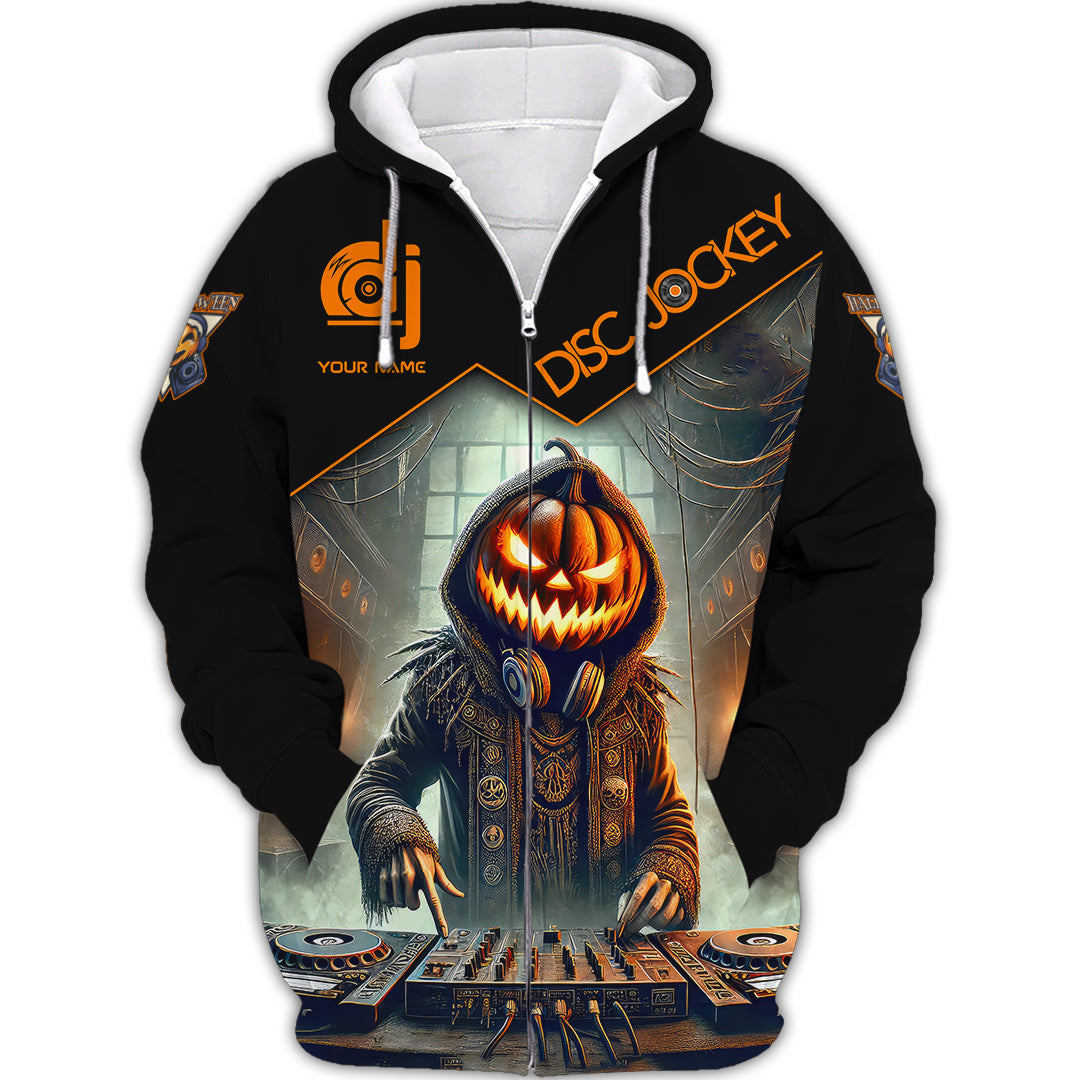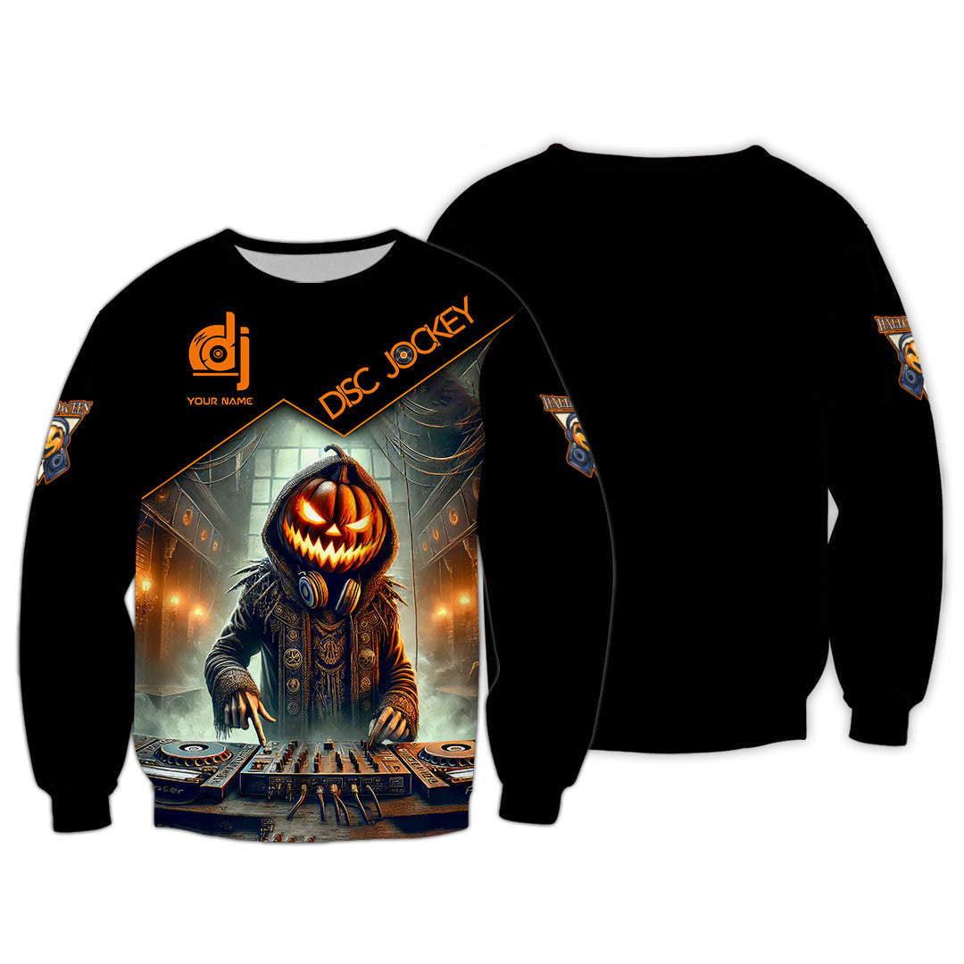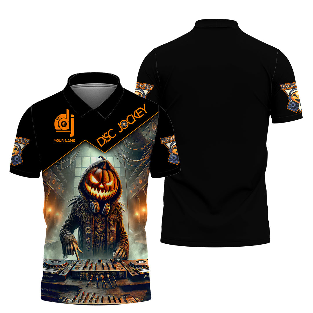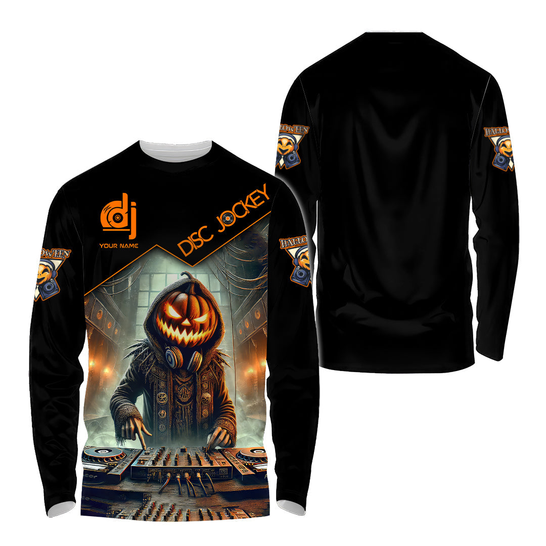 Unisex Shirt, Custom Name Disc Jockey Halloween Shirt, Halloween Polo Long Sleeve Shirt, Halloween Gift