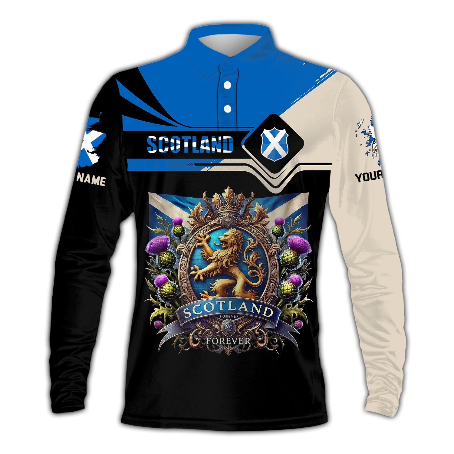Unisex Shirt, Custom Name Scotland Shirt, Scotland Polo Long Sleeve, Scotland Gift