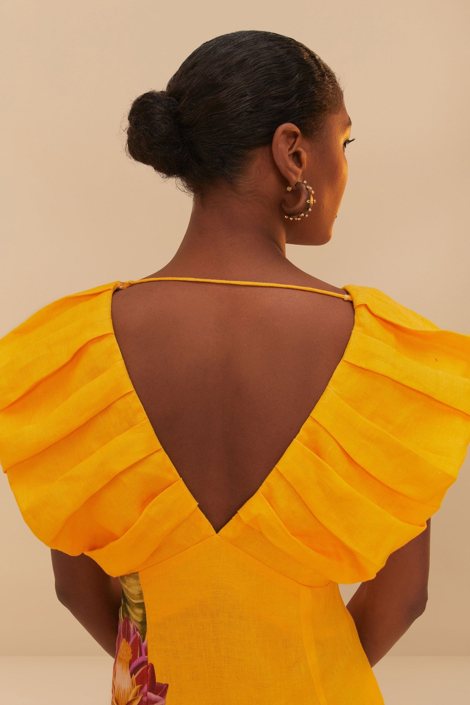Elevate your summer wardrobe with this Yellow Floral - Printed Midi Dress. The puff sleeves, deep V - neckline, and vibrant tropical floral print create a romantic, stylish look. Perfect for beach vacations, garden parties, or sunny outings. Pair with strappy sandals and minimalist jewelry to complete the effortlessly chic ensemble.