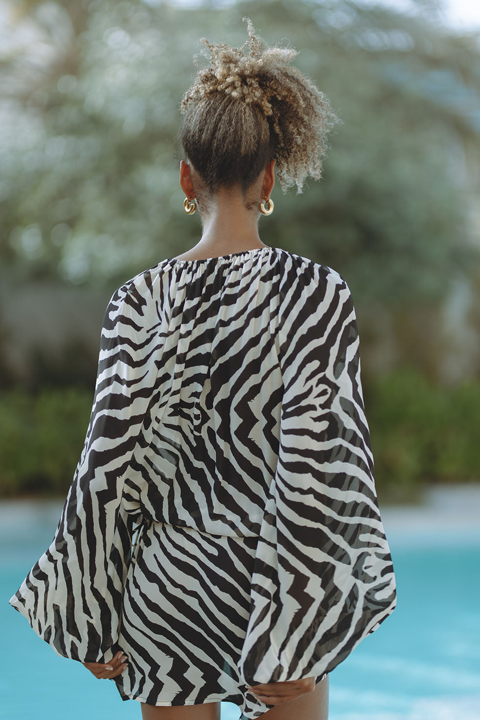 Elevate your beach or poolside wardrobe with this Zebra Print Deep V Neck Silk Mini Dresses The bold zebra pattern, deep V - neckline, and flowing silhouette create a chic, resort - ready look. Perfect for poolside lounging, beach outings, or tropical getaways. Pair with minimalist swimwear and gold accessories to complete the effortlessly stylish ensemble.